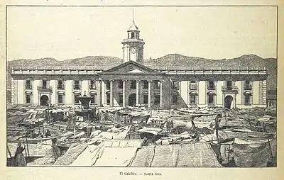 En informe dado el 27 de julio de 1855 por el gobernador departamental de Santa Ana coronel Teodoro Moreno, se menciona que se estaban recolectando materiales para reparar el cabildo.[5] Posteriormente, en informe del 1 de enero de 1859, el mismo gobernador informa que en el cabildo se construyó una pila para el servicio de las cárceles y un acueducto de 140 varas.[6] Por otro lado, entre el cabildo y la casa de las señoritas Cordero (que quedaba en la esquina surponiente de la cuadra del palacio municipal, mientras el cabildo o casa consistorial estaba en la esquina norponiente) había una mediagua que servía de cuartel a la unidad militar (que para entonces tenía rango de batallón) de la ciudad.[7]