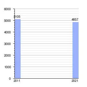Gráfica de evolución demográfica de Alcanena e Vila Moreira entre 2011 y 2021 |