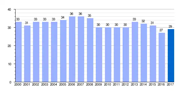 Gráfica de evolución demográfica de Alcedo[3] entre 2000 y 2017 |