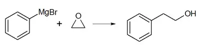 a) Reacción de Grignard entre el bromuro de fenilmagnesio y el óxido de etileno: