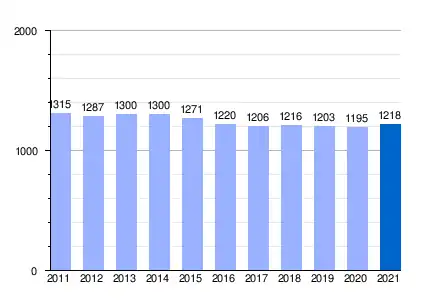 Gráfica de evolución demográfica de Alcudia de Guadix entre 2011 y 2021 |