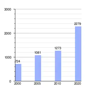 Cuenta con 2279 habitantes lo que representa un incremento promedio de 6.1% anual en el período 2010-2020 sobre la base de los 1273 habitantes registrados en el censo anterior. Ocupa una superficie de 0.8421 km², lo que determina al año 2020 una densidad de 2706 hab/km².[3]