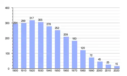 Gráfica de evolución demográfica de Aldealabad entre 1900 y 2020 |