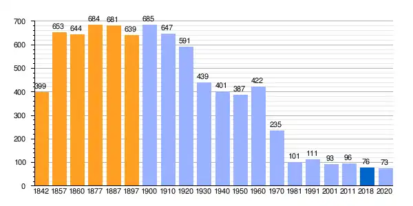 Población de derecho (1842-1897, excepto 1857 y 1860 que es población de hecho) según los censos de población del siglo XIX. Población de derecho (1900-1991) o población residente (2001-2011) según los censos de población del INE. Población según el padrón municipal de 2017 del INE. |