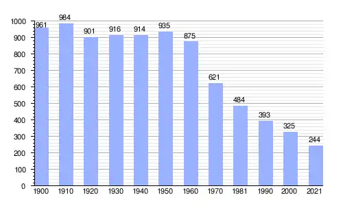 Gráfica de evolución demográfica de Aldeanueva de Figueroa entre 1900 y 2021 |