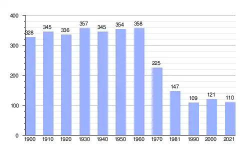 Gráfica de evolución demográfica de Aldeanueva de la Sierra entre 1900 y 2021 |