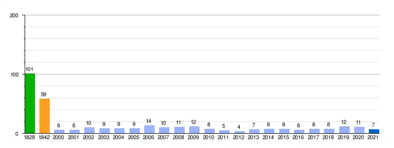 Población según el Diccionario geográfico-estadístico de España y Portugal de Sebastián Miñano.[4] Población de derecho (1842 que es población de hecho) según los censos de población del siglo XIX.[5] Población residente (1842-2020) según los censos de población del INE. Población según el padrón municipal de 2021 del INE. |