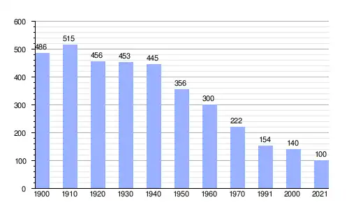 Gráfica de evolución demográfica de Aldeavieja de Tormes entre 1900 y 2021 |