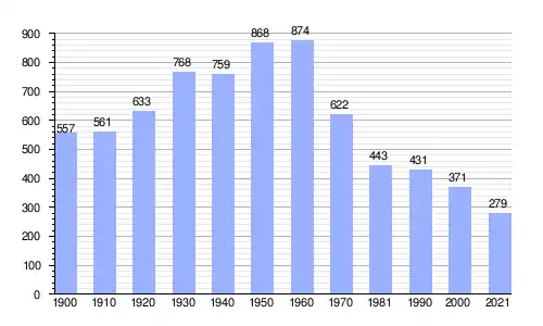 Gráfica de evolución demográfica de Aldehuela de la Bóveda entre 1900 y 2021 |