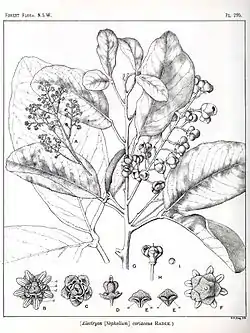 Alectryon coriaceus, es una especie de árbol perteneciente a la familia de las sapindáceas. Se encuentra en la selva lluviosa del este de Australia.