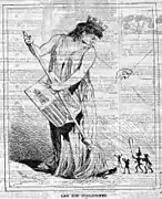 - Caricatura de La Flaca donde aparece España con gorro frigio indignida por la actitud de Salmerón y Castelar.