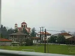 Se ubica junto a la carretera E90, que une Salónica con la esquina noroccidental del país. En su término municipal se cruza con la E75, que lleva a Atenas.[4]
