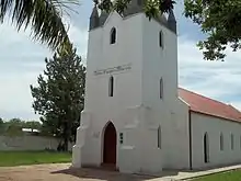 Dicho templo se encuentra frente a la plaza y su construcción se inició en el año 1878, por decisión del administrador Charles Henri Webster y la mayoría de los colonos. Actualmente una placa de mármol, existente en las paredes del Templo, recuerda sus nombres y fechas de sus muertes en manos del indígena. Antiguamente la capilla poseía piso de baldosas y en el pasillo central, se podía apreciar unas especiales baldosas de madera, con una cruz grabadas en ellas que indicaban el lugar donde se encontraban los cuerpos sepultados.