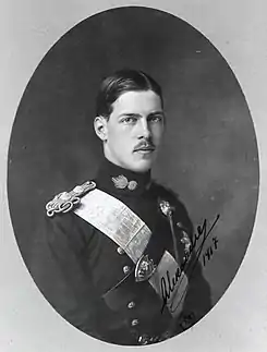 Finalmente, el 10 de junio de 1917, Charles Jonnart, el alto comisario de la Entente en Grecia, ordenó al rey Constantino que se apartara del poder.[12] Ante la amenaza de un desembarco de la Entente en El Pireo, el soberano aceptó partir al exilio sin abdicar oficialmente. Como los Aliados no querían instaurar la república en Grecia, uno de los miembros de la familia debía sucederle. Como el diádocos era considerado también un germanófilo como su padre,[13] los Aliados decidieron, en primer lugar, ofrecerle la corona a un hermano del soberano, el príncipe Jorge de Grecia.[14] Sin embargo, Jorge no aspiraba a ningún cargo político tras su fracaso como alto comisario de la Creta autónoma entre 1901 y 1905. Además, se mostró fiel a su hermano y rechazó categóricamente sustituir a su hermano.[15] Ante este fracaso, Venizelos y la Entente eligieron al segundo hijo de Constantino, el príncipe Alejandro, como nuevo monarca.[13]