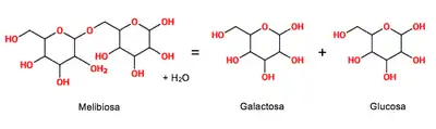 Actividad catalítica | melibiosa +H2O = galactosa + glucosa | |||