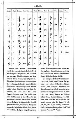 El alfabeto gali (conocido también como alfabeto ali gali o ali-gali; en mongol: cirílico - Али-гали үсэг Ali-gali üseg, tradicional - ᠠᠯᠢ ᢉᠠᠯᠢ ᠦᠰᠦᠭ Ali Gali u̇su̇g; sánscrito: आलि कालि āli kāli) es una extensión del alfabeto mongol clásico creada en 1587 por un traductor llamado Ayuush Güüsh (en mongol: Аюуш Гүүш) inspirado por el tercer dalái lama, Sonam Gyatso.[2]