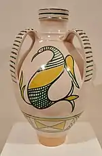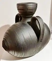 A pesar de su casi extinción, debido al abandono de los alfares y la emigración de sus alfareros en el inicio del siglo xx –Seseña y Feito dan la fecha aproximada de 1910–, la producción artesanal se incentivó con la apertura en 1975 de la Escuela de Cerámica de Miranda. A partir de la iniciativa del investigador, coleccionista y párroco José Manuel Feito, se promovió la recuperación no solo de las de formas singulares de la cerámica negra asturiana, sino asimismo de las técnicas tradicionales, los hornos, sistemas de cocción, localización de barreras de arcilla, etc.[14] Otro enclave importante para el desarrollo de esta tarea fue la casa-taller «El Alfar»,[lower-alpha 5][13] fundado por el profesor Ricardo Fernández López, impulsor del Centro Municipal de Cerámica de Avilés.