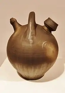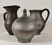 La producción de Llamas, en el concejo de Cangas del Narcea,[15] similar a la de Miranda y Faro en morfología, técnicas y proceso, documenta periodos de actividad en las décadas anteriores a la guerra civil española y en la de 1950, cuando conservaba 16 alfares.[lower-alpha 6][16] De entre el conjunto de piezas tradiciones de esta localidad cabría mencionar los «pucheiros» para cocinar, los «xarros» de agua, las «otsas» y las «tarreñas» (para conservar las natas de la leche); las «queiseiras» o moldes para hacer el queso; o los «xarros de pixulin», barriles cilíndricos con dos asas enfrentadas, junto a la boca de la vasija, que recuerda la morfología y elegancia de algunas vasijas de la cerámica griega y romana. Como otras producciones de la típica alfarería asturiana, además del pequeño comercio local, la producción se mantenía con los mercados y las ferias de localidades grandes como Cangas del Narcea, Avilés, Oviedo o Pola de Siero.[17]