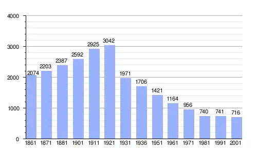 Gráfica de evolución demográfica de Alfedena entre 1861 y 2001 |