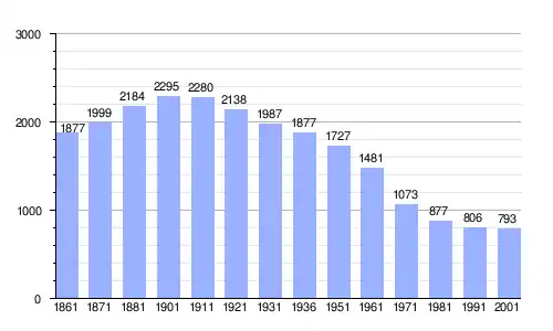 Gráfica de evolución demográfica de Alfiano Natta entre 1861 y 2001 |
