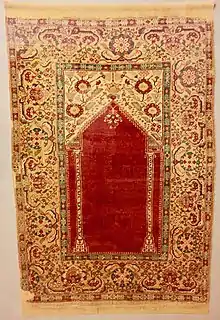 Un pequeño grupo de alfombras con diseños de alfombras de oración es notablemente similar al tipo de nudo doble con motivo de jarrón, excepto porque solo tiene un nudo. La decoración del campo, el perfil del nudo y el diseño del patrón de los refuerzos y los bordes lo distinguen de otras alfombras conservadas con patrones de alfombra de oración.[1]