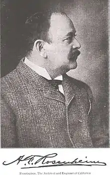 - The Architect and Engineer of California, ed. (marzo de 1907). «The Work of Alfred F. Rosenheim» (en inglés).