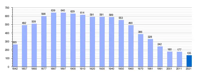 Gráfica de evolución demográfica de Algodre[14] entre 1842 y 2021 |