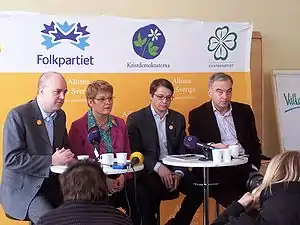 Ulf Kristersson (Moderado) Annie Lööf (Centro) Ebba Busch Thor (Demócrata Cristianos) Jan Björklund (Liberales) | |