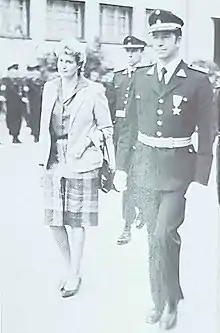 ![]() Alicia Cantarero Aparicio junto al director nacional de Gendarmería, Rodolfo Schmidlin Chávez, 1982. | ||