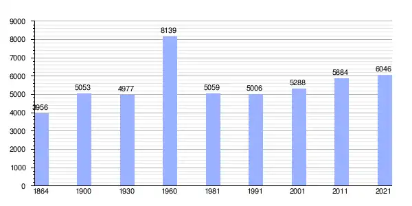 Gráfica de evolución demográfica de Aljezur entre 1864 y 2021 |