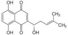 - A.N. Assimopoulou, D. Boskou, V.P. Papageorgiou (2004). «Antioxidant activities of alkannin, shikonin and Alkanna tinctoria root extracts in oil substrates». Food Chemistry 87 (3): 433-438. doi:10.1016/j.foodchem.2003.12.017.
