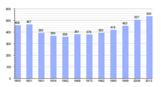 Gráfica de evolución demográfica de Allenwiller entre 1800 y 2013 |