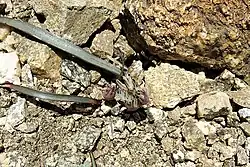 Es endémica de California, donde crece en los suelos de granito en varias de las cadenas montañosas del centro y del sur. Esta es una cebolla de tallo corto, que alcanza una altura de unos pocos centímetros desde un bulbo de forma ovalada. Brota una sola hoja. La inflorescencia contiene hasta el 20 flores violetas con venas oscuras de hasta un centímetro de largo y con anteras de color púrpura oscuro.