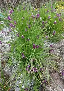 Allium: nombre genérico muy antiguo. Las plantas de este género eran conocidos tanto por los romanos como por los griegos. Sin embargo, parece que el término tiene un origen celta y significa "quemar", en referencia al fuerte olor acre de la planta.[4] Uno de los primeros en utilizar este nombre para fines botánicos fue el naturalista francés Joseph Pitton de Tournefort (1656-1708).