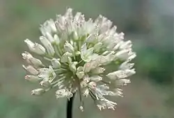 Allium: nombre genérico muy antiguo. Las plantas de este género eran conocidos tanto por los romanos como por los griegos. Sin embargo, parece que el término tiene un origen celta y significa "quemar", en referencia al fuerte olor acre de la planta.[4] Uno de los primeros en utilizar este nombre para fines botánicos fue el naturalista francés Joseph Pitton de Tournefort (1656-1708).