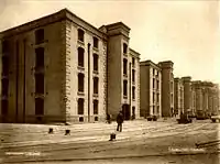 Esta primera gran obra, a cargo del Ingeniero Augusto Charme, contaría con tres grandes edificios que contendrían una capacidad total de dos millones de pies cúbicos, en tres pisos, más un subterráneo cada uno. Las murallas externas de estos edificios sería de cal y ladrillo, sus paredes transversales fueron hechas de adobe y su techo de pizarra.[5]