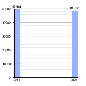 Gráfica de evolución demográfica de Almada, Cova da Piedade, Pragal e Cacilhas entre 2011 y 2021 |