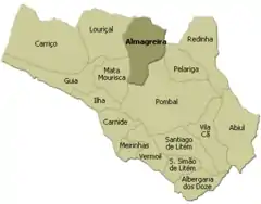 - Esta obra contiene una traducción derivada de «Almagreira (Pombal)» de Wikipedia en portugués, publicada por sus editores bajo la Licencia de documentación libre de GNU y la Licencia Creative Commons Atribución-CompartirIgual 3.0 Unported.