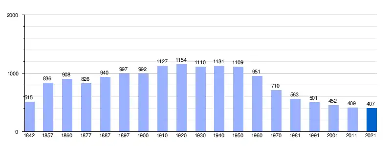 Población de derecho (1842-1991, excepto 1857 y 1860 que es población de hecho) o población residente (2001-2011) según los Censos de Población desde 1842.      Población según el padrón municipal de 2021 del INE.