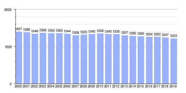 Gráfica de evolución demográfica de Almeiras entre 2000 y 2019 |