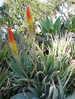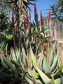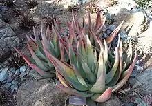 Es una planta suculenta sin tallo, que alcanza un tamaño de 0,5-1,0 m de altura, exceptuando la inflorescencia, es solitaria. Tiene 20-30 hojas de 400-600 x 55-100 mm, ligeramente canalizadas, glaucas de color verde oliva, la superficie superior a veces con unas pocas espinas dispersas, por lo general con menor superficie de espinas en la línea media, a veces también se dispersan. La inflorescencia de erecta a suberecta, cilíndrica, en forma de racimos muy densos; brácteas ovado-deltoides-agudas a acuminadas. Las flores de color rojo opaco de coral rojo en flor, naranja y marfil a la floración, de 17-30 mm de largo, un poco ventricosas.