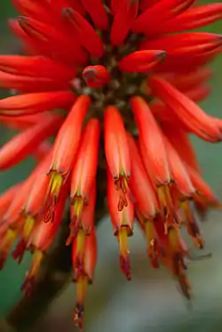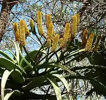 Es un pequeño árbol, cuyos tallos alcanzan un tamaño de 6-8 m de altura, por lo general simple. Las hojas son erectas a recurvadas, de 300-750 x 35-100 mm, de color verde, canalizadas y sin espinas de la superficie. La inflorescencia con 12-18 racimos, de 1,0-1,3 m de altura; racimos muy densos, cilíndricos, con brácteas oblongas, de 1-2 x 2-3 mm. Las flores de color amarillo anaranjado en la yema, de color limón en la floración.