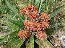 Es una planta herbácea suculenta perenne se surgen solitarias o en pequeños grupos. Las hojas como todos los aloes se disponen en rosetas, son de color verde brillante con líneas señaladas y numerosas manchas blancas, son largas, estrechas, lanceoladas, carnosas y con los márgenes armados con dientes. La inflorescencia en una panícula ramificada con racimos colgantes de flores de color naranja-rojo.[2]