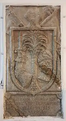 ![]() Lápida de Alonso de Alfaro en el Convento de Santo Domingo, Santiago del Estero. | ||