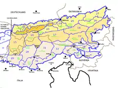 ![]() Alpes orientales según la SOIUSA, con los Alpes calizos del Tirol septentrional destacados en naranja. | ||