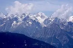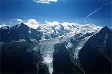 ![]() Macizo del Mont Blanc visto desde el oeste-sudoeste | ||