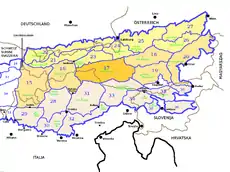 ![]() Alpes orientales según la SOIUSA, con los Alpes del Tauern occidentales destacados en naranja. | ||