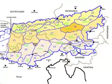 ![]() Alpes orientales según la SOIUSA, con los Alpes del Tauern orientales destacados en naranja. | ||