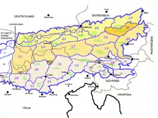 ![]() Alpes orientales según la SOIUSA, con los Alpes septentrionales de Estiria destacados en naranja. | ||