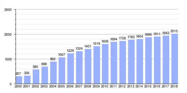 Gráfica de evolución demográfica de Alqueidón entre 2000 y 2018 |